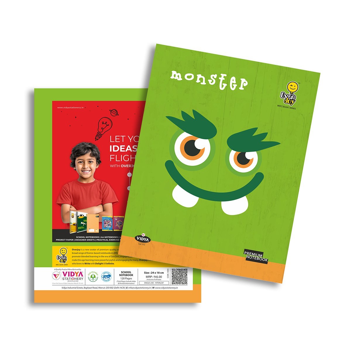Overjoy Premium School Notebook Green Monster Single Line-Interleaf