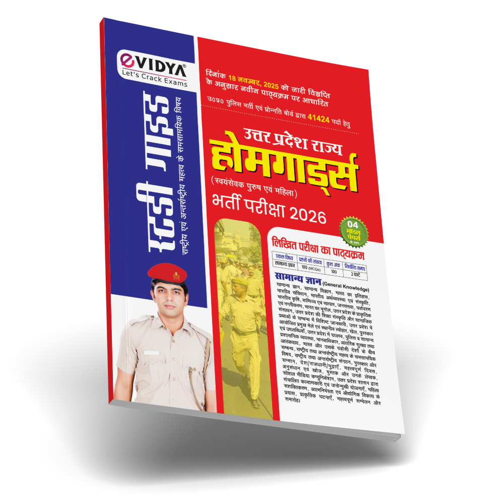 eVIDYA आपकी UP Home Guard Book और SSC-GD कांस्टेबल (BSF, CISF, CRPF, SSB, ITBP, AR, SSF, NCB) परीक्षा की तैयारी को समर्पित है। हमारी स्टडी गाइड में उत्तर प्रदेश होमगार्ड्स (स्वयंसेवक पुरुष एवं महिला) भर्ती परीक्षा की पूरी कवरेज है.