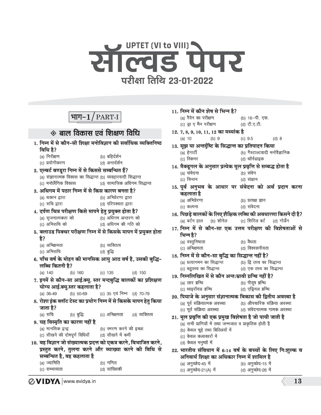 - Bal Vikas Evam Shiksha Shastra (Child Development & Pedagogy): Covers principles of child development, learning theories, and educational psychology.